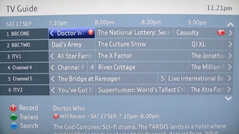 - An onscreen electronic programme guide, with up to 14 days of TV listings and series link.
