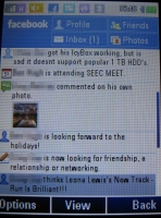 The phone has a capable 3.2 Meg camera (sadly with no flash), a web browser, media player (with Last.FM scrobbling), PC connectivity, Bluetooth and high-speed Internet access. The camera can upload snaps directly to your Facebook account.